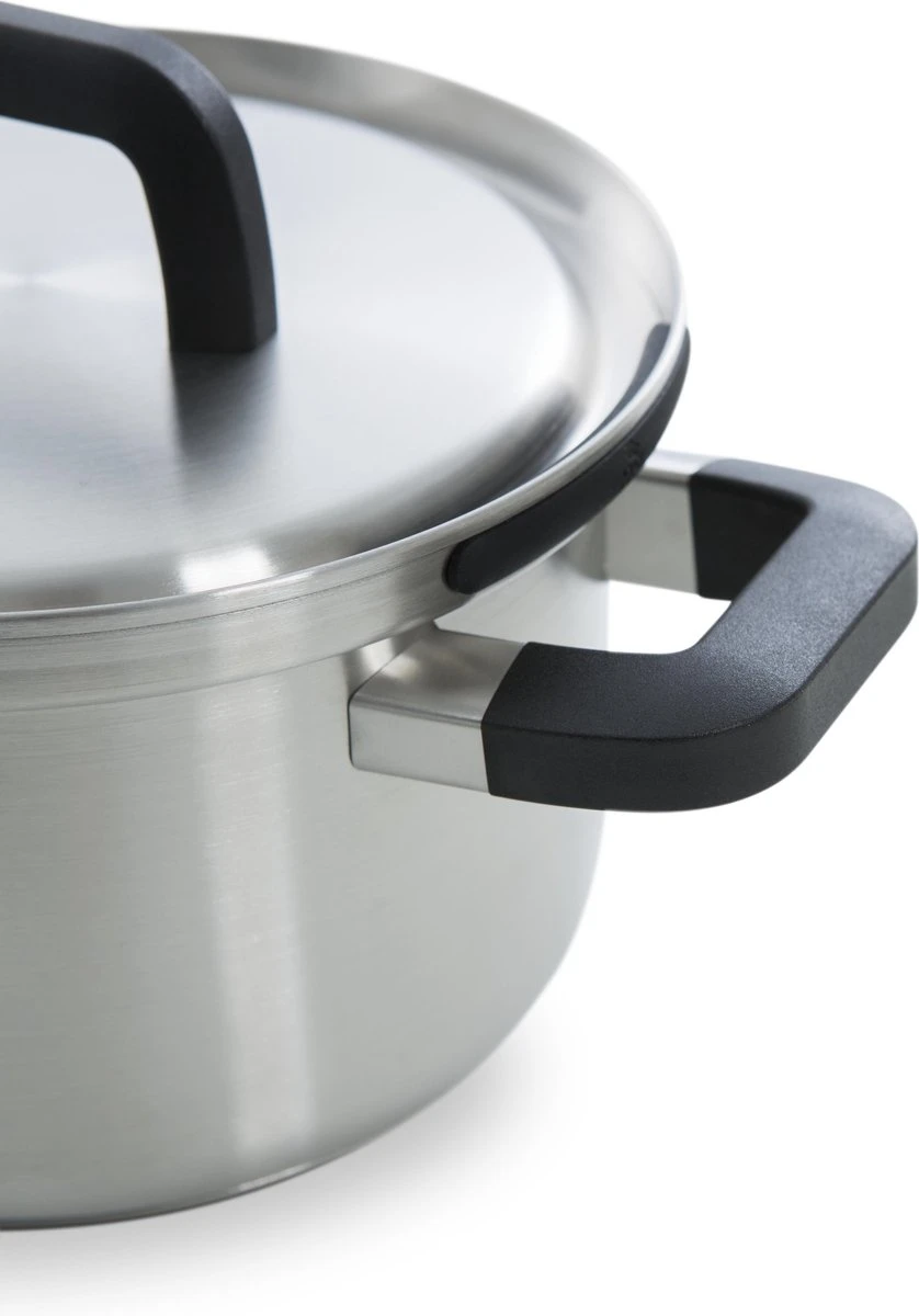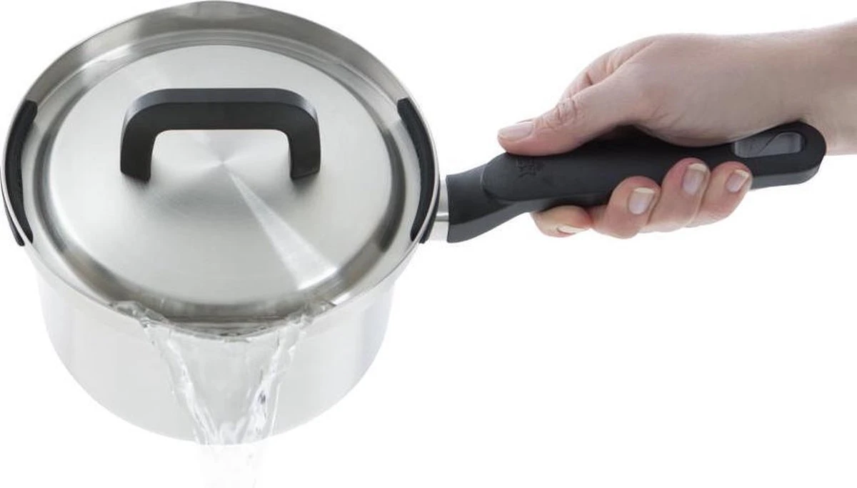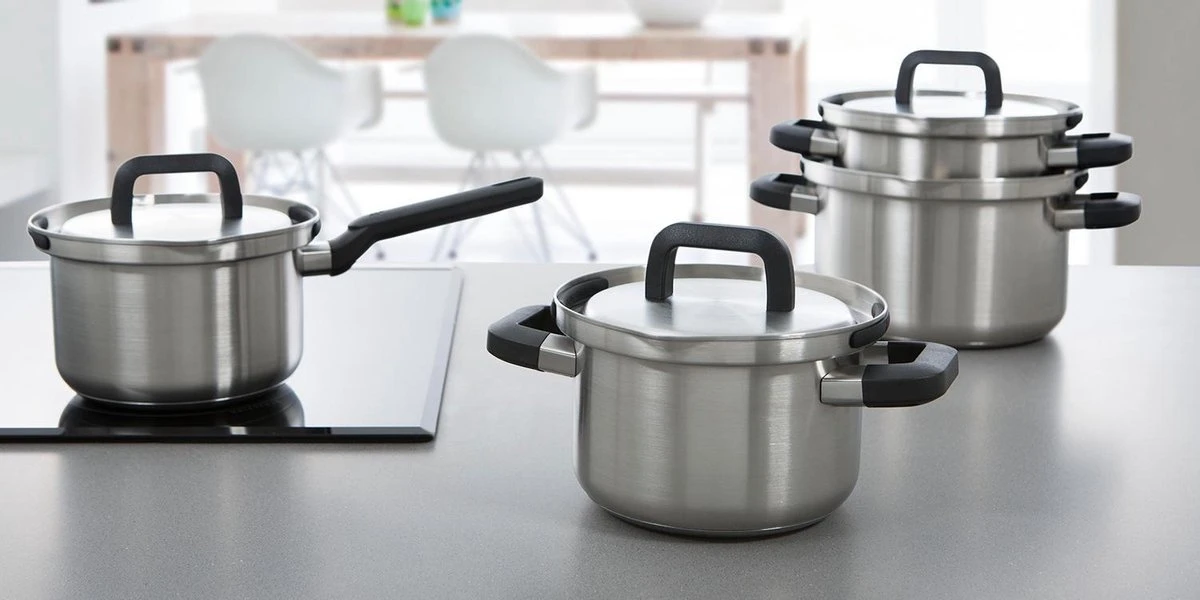 Na gebruik kunnen de pannen gereinigd worden in de vaatwasser. Daarnaast zijn ze goed stapelbaar vanwege de hooggeplaatste grepen; zo bespaar je ruimte in de keukenkast. Extra voordeel is dat deze pannenset inductie geschikt is