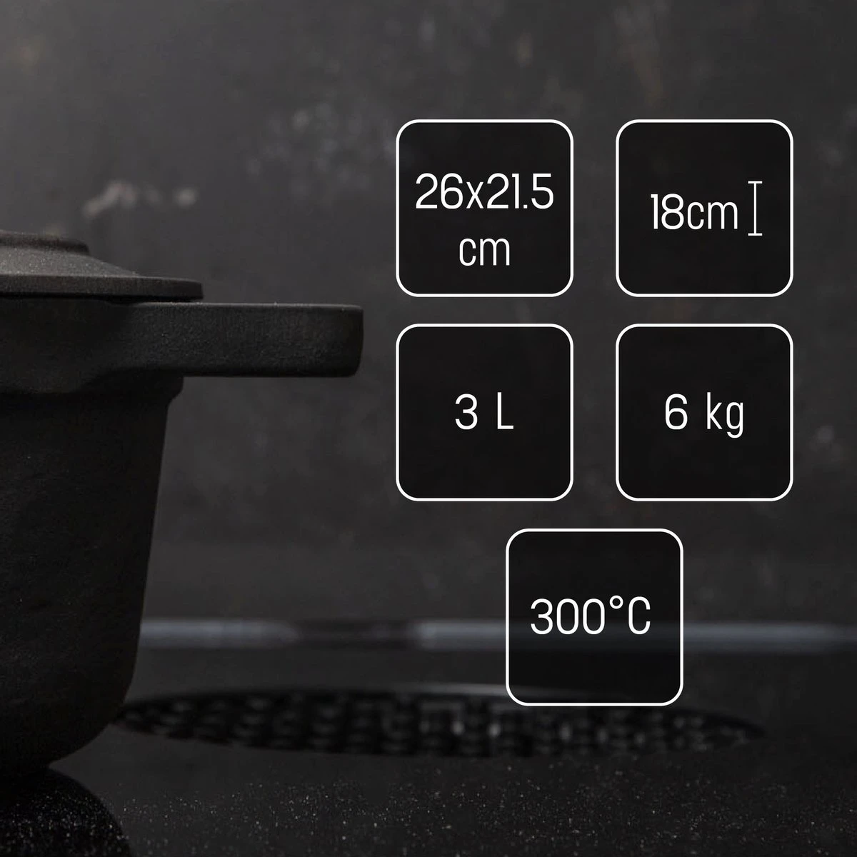 - ENERGIEZUINIG KOKEN: Deze pan is uitgevoerd in hoogwaardig gietijzer, een uitstekende warmtegeleider! De gietijzeren pan en deksel behouden de warmte zeer goed, dit maakt energiezuinig koken een feit.