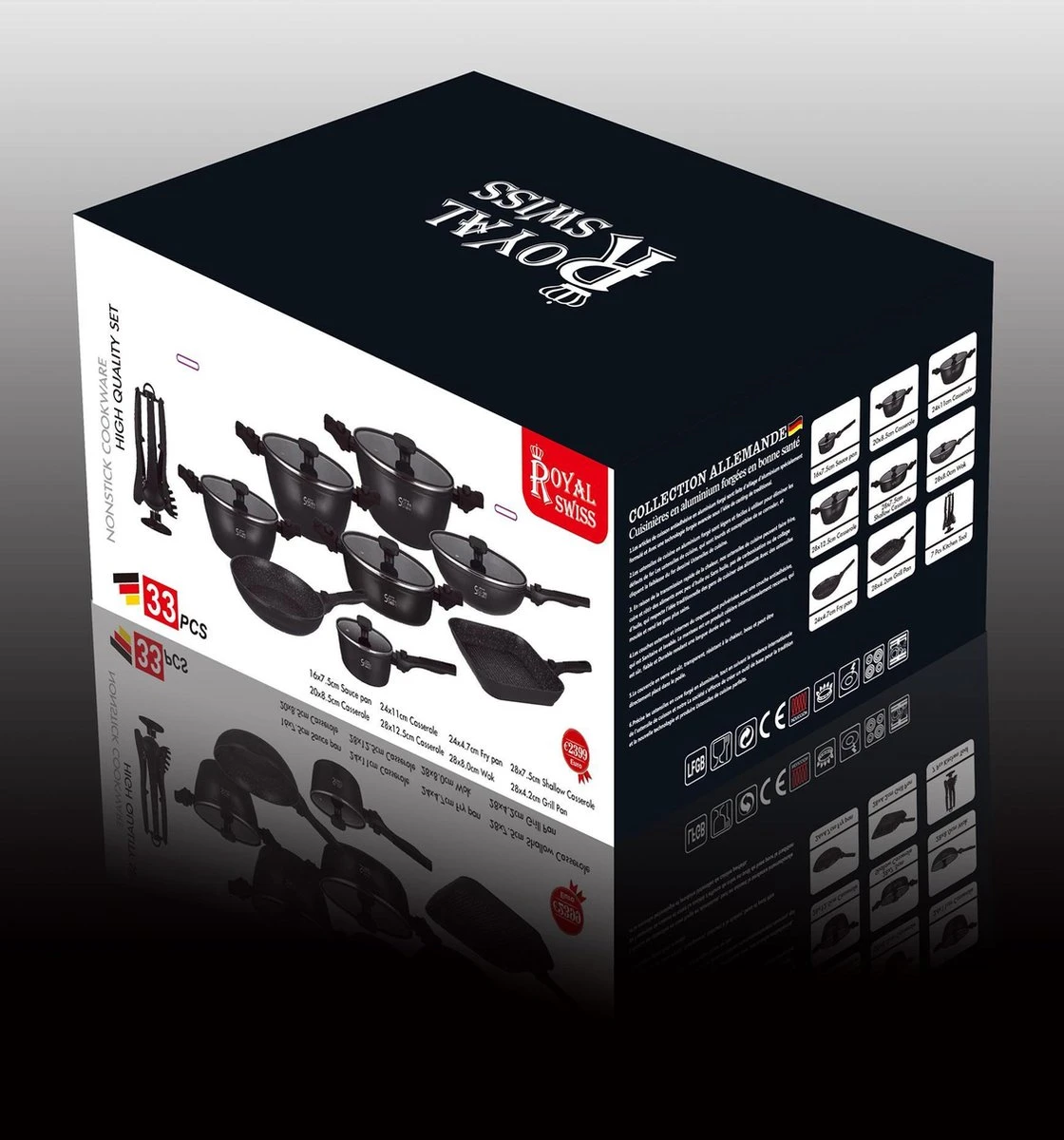 Royal Swiss 33-delige pannenset met antiaanbaklaag