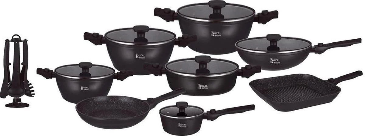 Heb je een nieuwe keuken? Of ben je gewoon toe aan nieuwe pannen? Zoek niet verder, want deze Royal Swiss® pannenset biedt alles wat je nodig hebt. Geen gedoe meer met maten en verschillende soort pannen. De Royal Swiss® pannen zijn namelijk goed op elkaar afgestemd en zijn voorzien van een bijpassende glazen deksel.